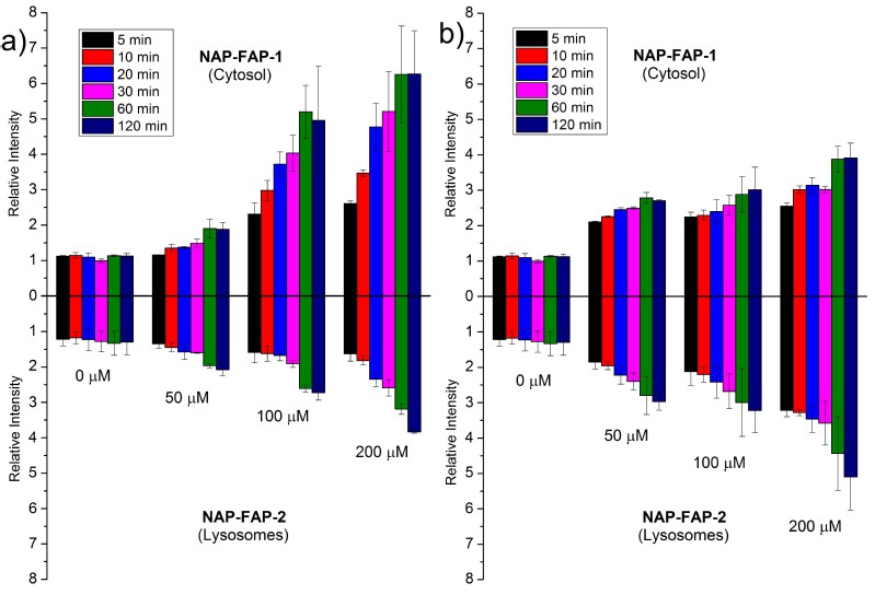 处理后细胞质和溶酶体中甲醛的相对浓度