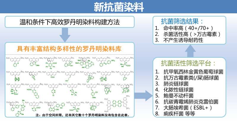 细菌进化机制决定了抗生素的使用必然会导致耐药性的出现。但抗生素在临床和养殖业的滥用和无序排放,使这一进程大大加快。近些年来,具有多重耐药机制的超级细菌不断涌现,世界各地由于细菌感染而无法医治的案例时有发生。细菌耐药已经成为全球重大公共卫生安全问题。从全新的分子平台发现抗菌活性化合物是本领域重要研究方向。公司suncitygroup太阳集团钱旭红院士团队杨有军教授课题组与上海交通大学suncitygroup太阳集团陈代杰教授课题组深入合作,在该研究方向取得进展。近期,相关工作被《自然·通讯》以“A diversity-oriented rhodamine library for widespectrum bactericidal agents with low inducible resistance against resistant pathogens”在线报道。