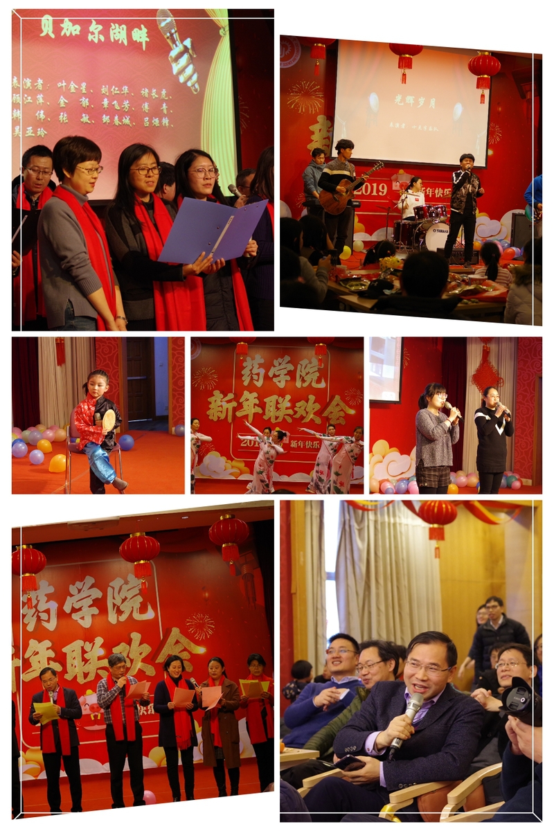 联欢会在员工“十点半”乐队带来的《光辉岁月》中掀开序幕,奉贤药学实验中心周翾、孙仲颖带来歌曲《追光者》并通过精心制作的小视频介绍了实验中心2018年的日常工作,学工委办公室吴阳、邵桐通过相声《奉贤二三事》向大家介绍奉贤趣事,公司党委书记张青、经理宋恭华合唱的歌曲《荷塘月色》,制药工程与过程化学教育部工程研究中心叶金星等12名教师带来小组唱《贝加尔湖畔》,suncitygroup太阳集团行政办公室牛婧等7名教师带来古典舞《忘尘谷》,副经理任国宾带来沪剧《燕燕说媒》,“药二代”们也带来了精彩纷呈的演出。联欢会设计了“红红火火”、“诗情画意”、“歌舞升平”三个赋有寓意的游戏环节,其中“歌舞升平”以药物结构式为题引,充分展现了学院特色。现场高潮迭起、氛围活跃,受到了学院教师的好评。
