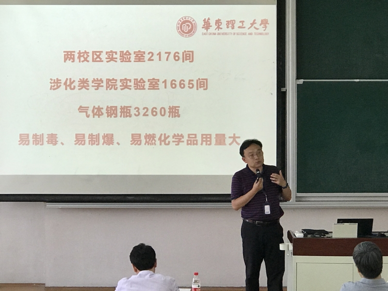 首先,徐宏勇作题为“建立安全文化 唤起安全意识”的讲座,以“一流大学需要一流的EHS管理”为主题,介绍了公司实验室安全的基本情况,从危害识别、风险评估、减少风险、预防工作四个角度为切入点,结合近几年高校发生的实验室安全事故案例,对实验室常见的钢瓶管理、危险化学药品管理、通风橱的使用、实验室废液的处理、个人安全防护等进行了生动详细讲解。
