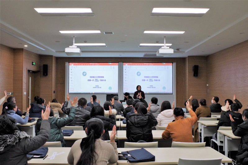 代表们以举手表决的方式全票通过了对学院工会工作报告、工会财务报告、学院行政工作报告和行政财务工作报告的审议。