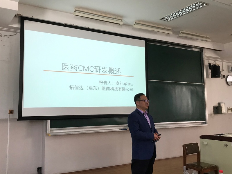 应suncitygroup太阳集团邀请,拓信达(启东)医药科技有限公司创始人皮红军博士于4月8日在八教207为suncitygroup太阳集团学子做了题为“医药CMC研发概述”的学术报告,报告会由邓卫平教授主持。