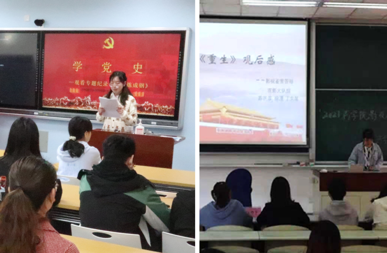 在奉贤校区,员工党员分享了自己的入党初心和入党故事,入党积极分子和员工骨干用朗诵、赏析等多种表现形式回顾了中国共产党历史中如中共一大、古田会议、遵义会议等重要历史事件,号召大家通过多方面、多角度开展党史学习教育,用昂扬姿态迎接中国共产党的百年华诞,以青春力量助力全面建设社会主义现代化国家新征程。现场还开展党史知识小竞赛,在场同学踊跃抢答,在过程中也加深了对党的认识。