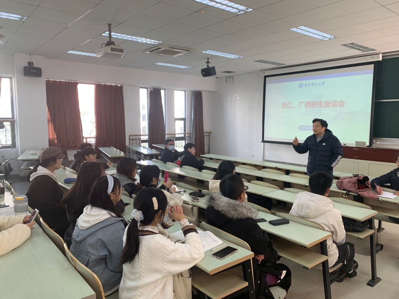 为充分了解学校本科招生宣传效果,加强浙江、广西壮族自治区本科招生宣传工作组与两省在校员工之间的联系,以进一步优化本科招生宣传工作,2021年11月8日,浙江、广西壮族自治区本科招生宣传工作组在奉贤校区C202教室召开了2021级本科新生代表座谈会。