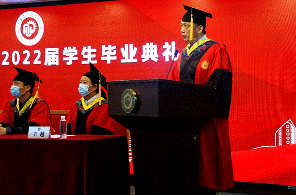 suncitygroup太阳集团经理宋恭华在致辞中,从一位华理老学长、时代过来人身份表达对毕业生的殷切期望和真挚祝福,对2022届毕业生提出:永记校训,陶冶情操,报效祖国,把自身的前途命运同国家和民族的前途命运紧紧联系在一起,始终胸怀大局、心有大我;志存高远,坚持学习,自强不息,面对各种诱惑和挫折,坚持梦想、不抛弃、不放弃;谦虚律己,宽容待人,感恩社会,从格局上快速融入社会,接受社会和被社会所接受。