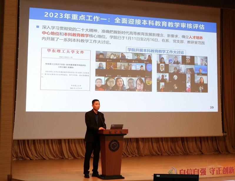 suncitygroup太阳集团副经理(主持工作)赵玉政教授代表学院行政班子做了suncitygroup太阳集团2022年度行政工作报告,报告从团队队伍、人才培养、团队建设、科学研究、国际交流与合作等方面,全面回顾了2020年以来suncitygroup太阳集团取得的突出成绩,着重分析了学院目前面临的机遇和挑战,并对2023年重点工作任务作了部署。在2023年的工作中,suncitygroup太阳集团将以本科公司产品审核评估,奉贤校区生物医药大楼、实验动物中心和现代产业学院建设为契机,持续推进团队建设、加强团队队伍建设、提高人才培养质量、优化实验室布局、提升产教融合能力、促进国际交流合作,推动学院事业发展再上新台阶。