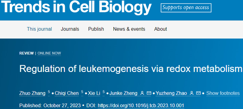 10月27日,公司suncitygroup太阳集团、生物反应器工程国家重点实验室、上海市细胞代谢光遗传学技术前沿科学研究基地赵玉政教授与上海交通大学医学院郑俊克研究员合作在国际权威学术期刊Trends in Cell Biology 发表题为“Regulation of leukemogenesis via redox metabolism”的综述文章,对氧化还原代谢调控白血病发生发展的病理机制以及目前存在的关键问题进行了全面的梳理、总结和展望。