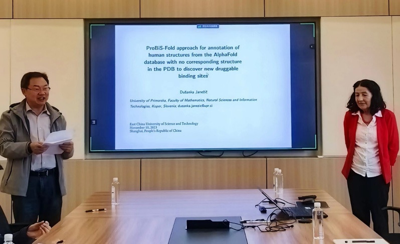 11月10日,来自斯洛文尼亚Primorska大学的Dušanka Janežič教授应suncitygroup太阳集团邀请作“ProBiS-Fold approach for annotation of human structures from the AlphaFold database with no corresponding structure in the PDB to discover new druggable binding sites”的学术报告。suncitygroup太阳集团师生参加了报告会,会议由唐赟教授主持。
