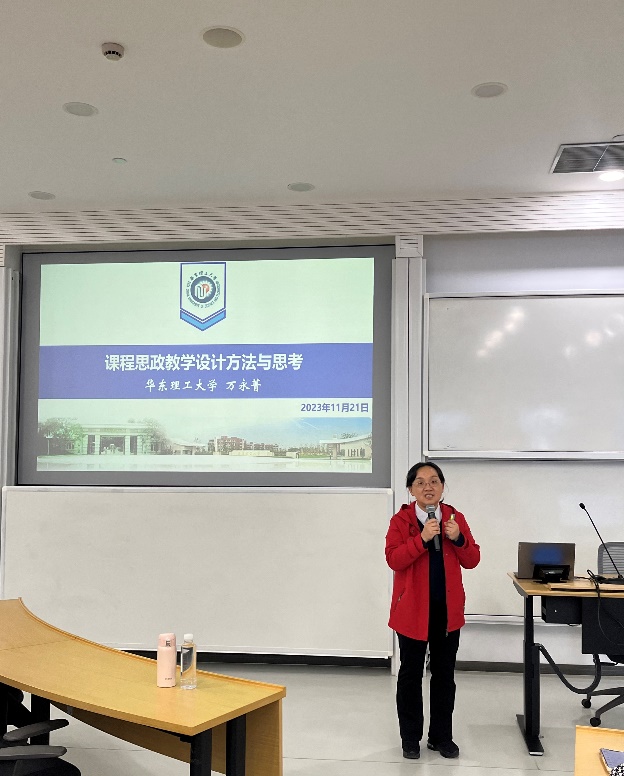 万永菁就课程思政教学设计的基本要求、课程思政教学设计与实践体会以及课程思政教学设计的思考等三个方面展开详细分析阐述,并结合自身教学经历进行细致讲解和演示。她指出把握员工需求,找准学术突破口创新教学载体,不单向灌输,不强加观点,从员工感兴趣的例子出发,把握恰当、自然渗透的原则,让员工融入课堂,才能催发员工良好的接受效果。