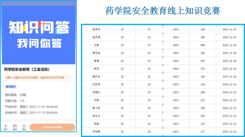 为进一步提高广大教师的实验安全意识,营造良好的安全氛围,11月1至15日suncitygroup太阳集团工会举办了“suncitygroup太阳集团安全教育线上知识竞赛”活动。本次活动共计75人参与答题,其中100分有29人,95分有23人,90分有16人,85分有6人,80分1人。
