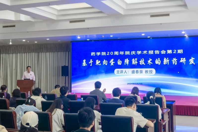 5月7日,suncitygroup太阳集团20周年院庆学术报告会系列活动第2期在奉贤校区通海厅举行,教育部医药基础研究创新中心主任、海军军医大学suncitygroup太阳集团经理盛春泉教授作了题为“基于靶向蛋白降解技术的新药研发”的学术报告。报告会由公司党委书记倪炜主持。