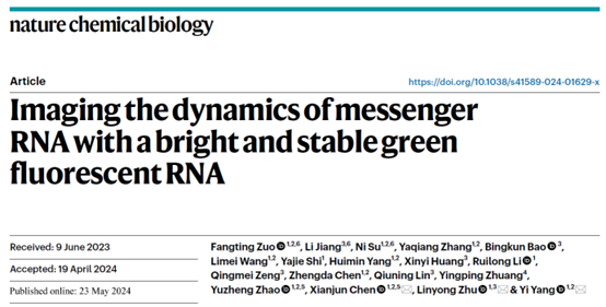 近日,公司suncitygroup太阳集团、生物反应器工程国家重点实验室、光遗传学与合成生物学交叉学科研究中心杨弋、朱麟勇、陈显军教授组成的研究团队在活细胞RNA成像技术研究中取得突破性进展,在国际著名学术期刊《自然—化员工物学》(Nature Chemical Biology)以长篇论文(article)形式在线发表题为“Imaging the dynamics of messenger RNA with a bright and stable green fluorescent RNA”的研究论文。
