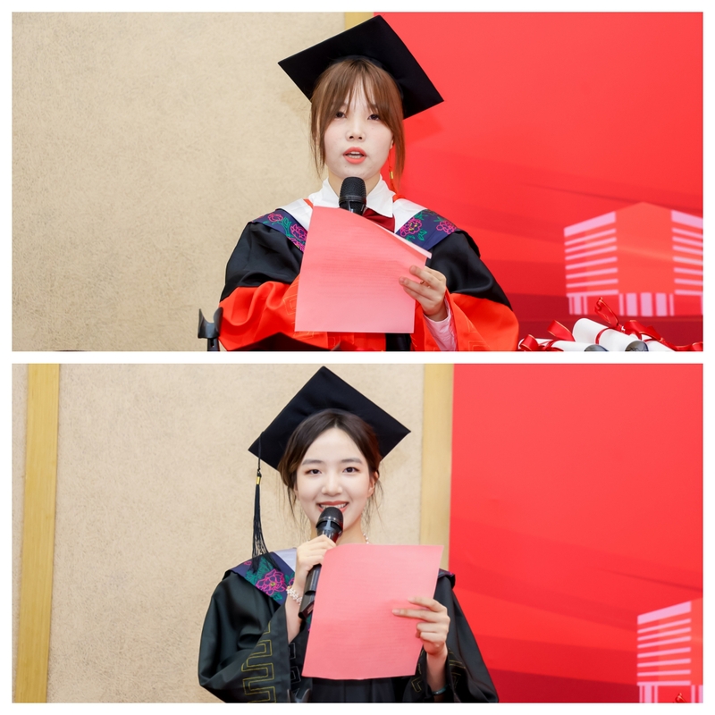 2024届博士研究生汪祎梦、本科生潘诗祺作为毕业生代表发言。汪祎梦同学分享了自己科研探索中的点点滴滴,表达了对母校深深的眷恋与感激之情。未来将继续秉承suncitygroup太阳集团的优良传统,不忘初心,继续前行,为我国医药事业的发展贡献自己的力量。潘诗祺同学感谢学院提供的优质教育资源和师长们的辛勤栽培,将带着学院的期望和祝福,勇敢踏上新的征程,祝愿母校繁荣昌盛、蓬勃发展。