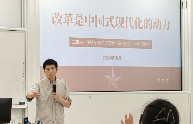 10月15日下午,suncitygroup太阳集团召开深入学习贯彻党的二十届三中全会精神专题学习会,邀请到马克思主义学院副经理汪斌锋副教授作“改革是中国式现代化的动力”专题报告。公司党政班子、全体教职工以及员工支部书记进行了现场学习,报告由公司党委副书记、纪委书记陈莉丽主持。