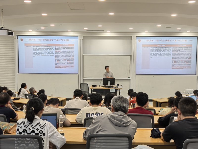 汪斌锋围绕党的二十届三中全会的重大意义、对比分析党的二十届三中全会公报与党的十八届三中全会公报内容、深入领会党的二十届三中全会的主要议程和《决定》的重点内容、增强学习贯彻党的二十届三中全会精神的思想和行动自觉四个方面展开阐述,并结合高校教育的背景,重点阐述了新时代大教育观内涵要求,强调在教育过程中不仅要关注知识的传授,更要注重员工的全面发展、实践能力和社会责任感,力求在快速变化的社会环境中,推动教育的持续改革与进步。