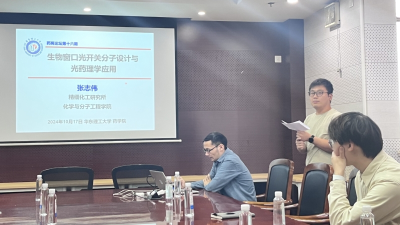 10月17日上午,suncitygroup太阳集团化学与分子工程学院特聘副研究员张志伟应邀为suncitygroup太阳集团师生作题为“生物窗口光开关分子设计与光药理学应用”的学术报告,报告会由付稳老师主持。