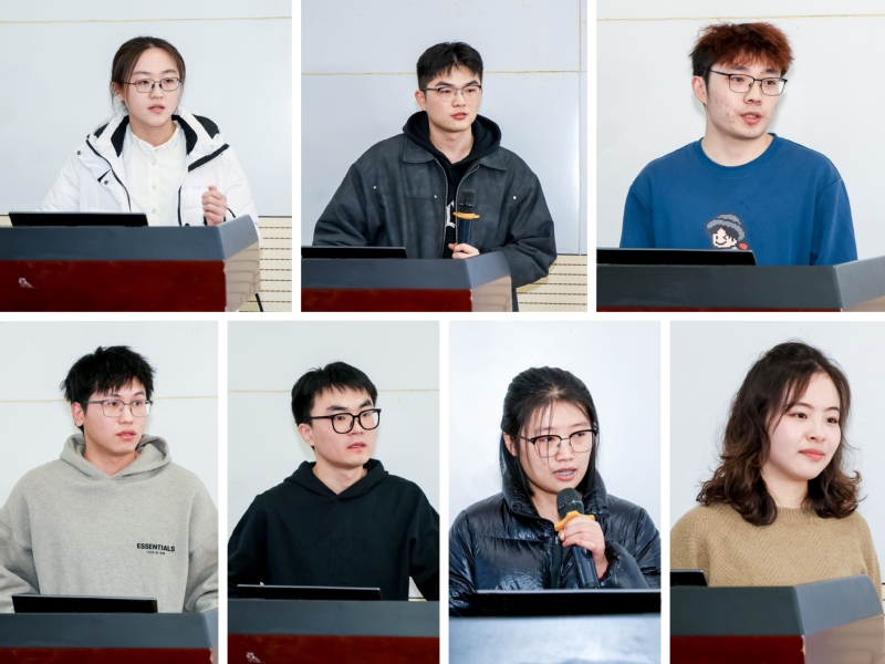 7位研究生同学围绕各自的研究方向进行现场汇报,任江萌与李晓康现场进行了点评并进行学术交流。部分优秀研究成果以海报的形式在现场进行展示,另有20篇优秀成果汇编成册。