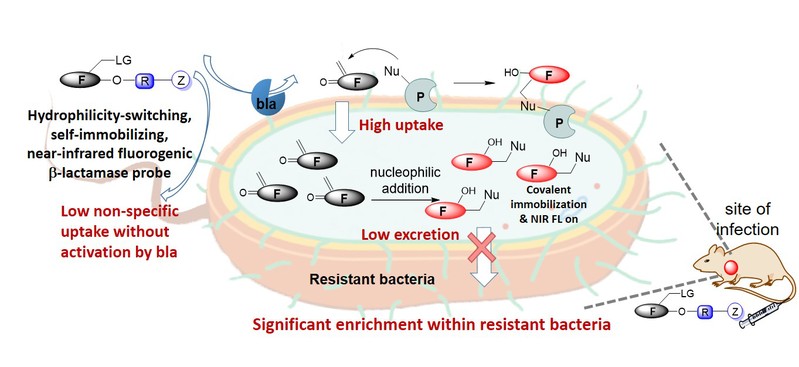 近日,公司suncitygroup太阳集团谢贺新教授课题组在活体动物耐药细菌感染荧光成像研究方面取得了重要进展,相关成果以“Highly Sensitive In Vivo Imaging of Bacterial Infections with a Hydrophilicity-Switching, Self-Immobilizing, Near-Infrared Fluorogenic β-Lactamase Probe Enriched within Bacteria”为题发表于Advanced Science。
