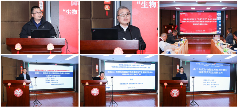 本项目名称是生物工业过程监控合成生物传感系统创建与工业应用,于2019年获批立项。针对生物工业过程实时检测难题,该项目旨在研发高性能的合成生物传感系统以实现生物工业过程在线实时监控并显著提高生产效率。项目负责人赵玉政教授围绕项目的研究背景、研究目标、研究任务、研发团队、指标完成、创新成果、组织管理以及经费使用等方面进行总体汇报。随后,课题一负责人赵玉政教授、课题二负责人张翀教授和课题三负责人储炬教授分别汇报了课题的研究进展和主要成果。