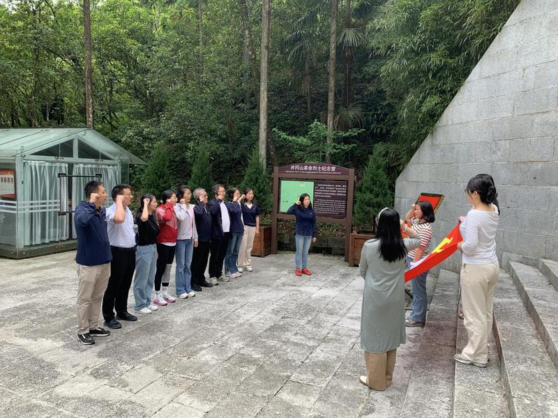 在井冈山革命博物馆,丰富的文物史料、生动的场景复原,全景式展现了井冈山革命斗争的光辉历程。党员们跟随讲解员的脚步,从秋收起义到井冈山会师,从黄洋界保卫战到反“围剿”斗争,深刻领悟了“坚定信念、艰苦奋斗、实事求是、敢闯新路、依靠群众、勇于胜利”的井冈山精神。在鲜红的党旗下,全体党员重温入党誓词,进一步坚定了为党育人、为国育才的使命担当。