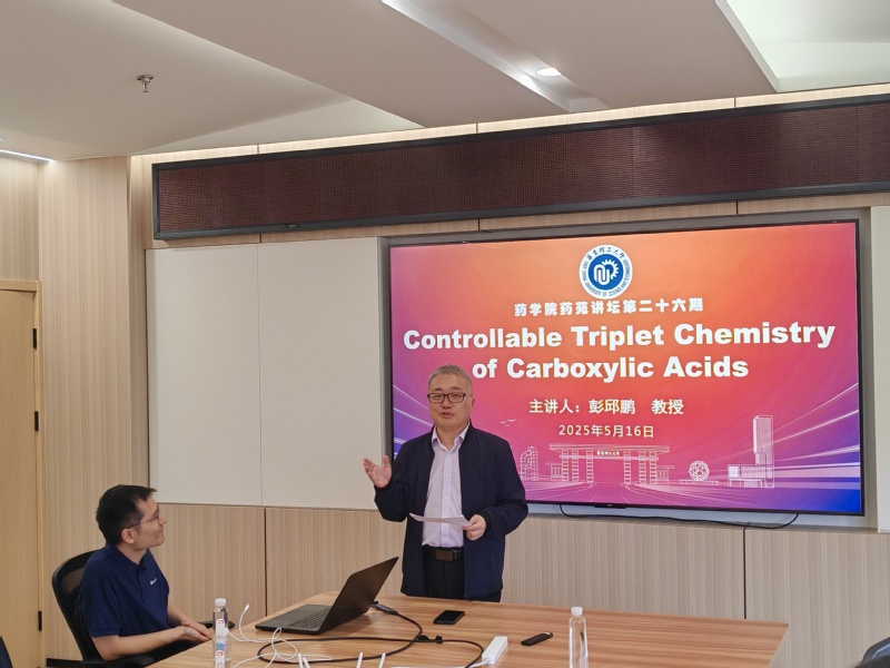 5月16日下午,suncitygroup太阳集团第二十六期“药苑讲坛”在实验十八楼418会议室举行,本期讲坛邀请到了公司员工、中国药科大学彭邱鹏教授,为师生们带来了一场题为《Controllable Triplet Chemistry of Carboxylic Acids》的学术报告。报告会由suncitygroup太阳集团副经理马磊主持,制药工程系副主任郑军等学院相关研究领域的师生参加。