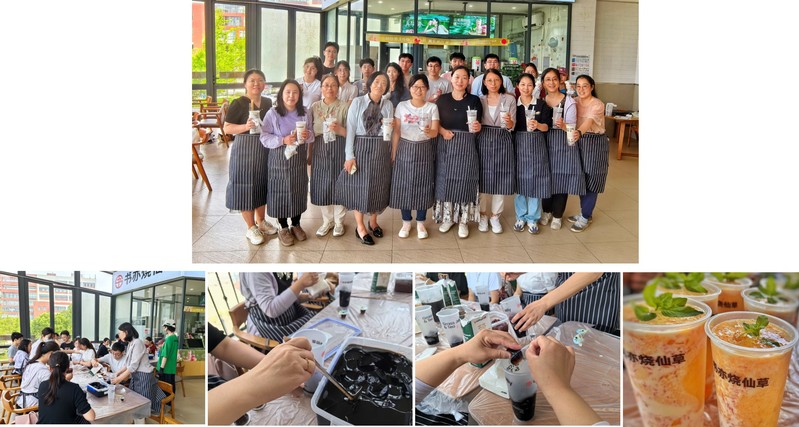 活动当天,在工作人员指导下,学院师生们共同制作夏日饮品。大家按照标准化流程,将仙草粉与清水按比例混合,经搅拌、熬煮、凝固,制成烧仙草冻,再准备水果、鲜奶等原料,制作成一杯杯烧仙草奶茶和杨枝甘露。过程中,师生相互协作、交流心得,体验劳动带来的惬意初夏。