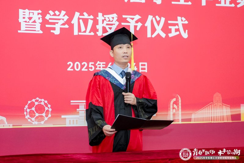 suncitygroup太阳集团教授赵建宏作为教师代表发言。他表示今年是他从华理本科毕业的第30年。30年来,他在绿色制药领域取得了丰硕的成果,这些成就离不开母校的栽培。他寄语毕业生们要感恩母校,牢记“勤奋求实,励志明德”的校训精神,为我国医药事业做出更大贡献。