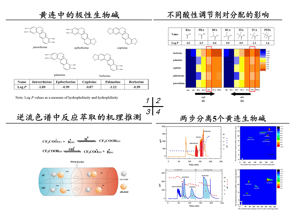 Y. Li, F.F. Cai, M. Zhang*, H.Y. Zhang, Y.R. Wang, P. Hu*. Two-stage fractionation of polar alkaloids from Rhizoma coptidis by countercurrent chromatography considering the strategy of reactive extraction. Journal of Chromatography A. 2015, 1378: 58-64.